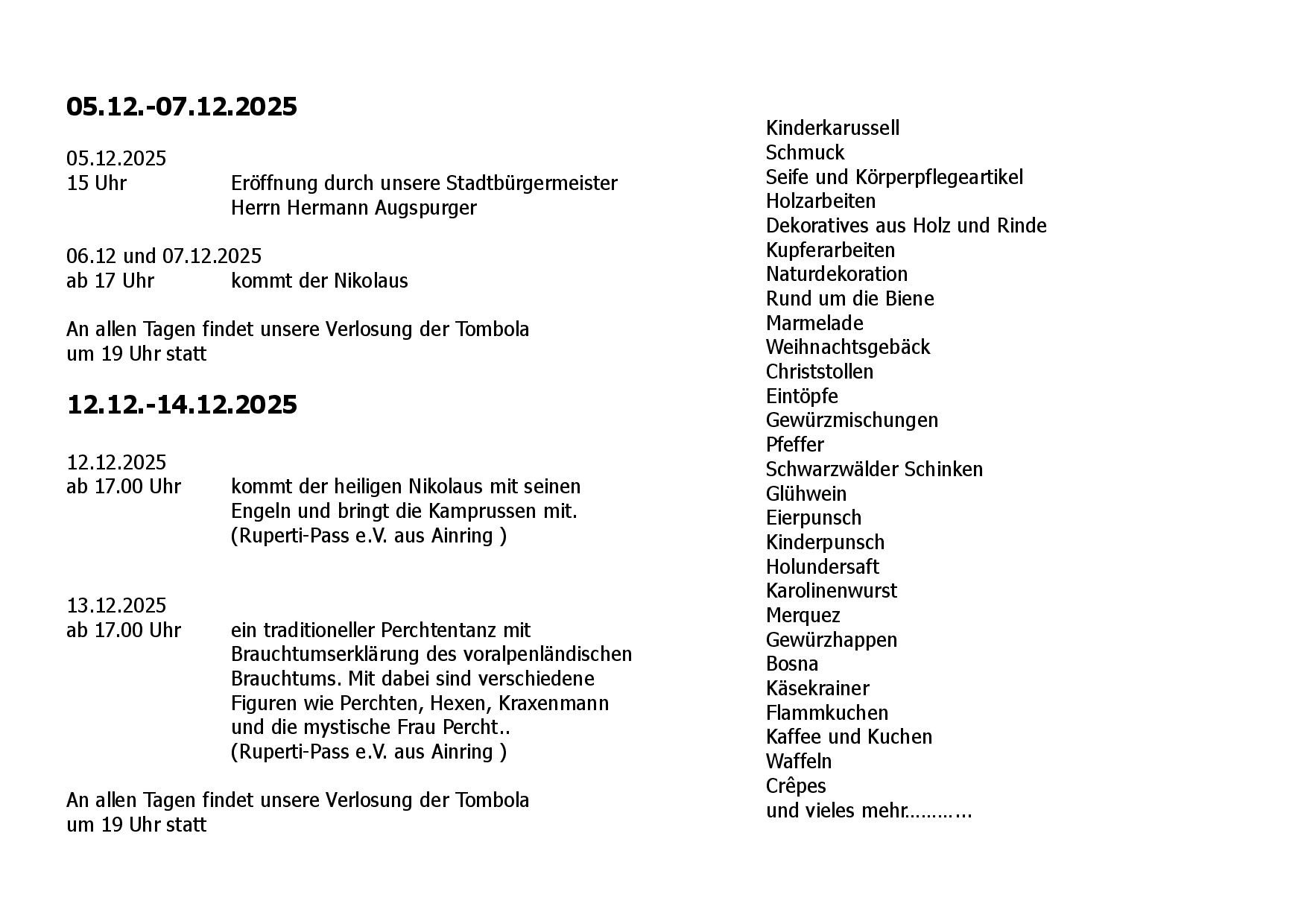 sowie die verkaufsoffenen Sonntage
